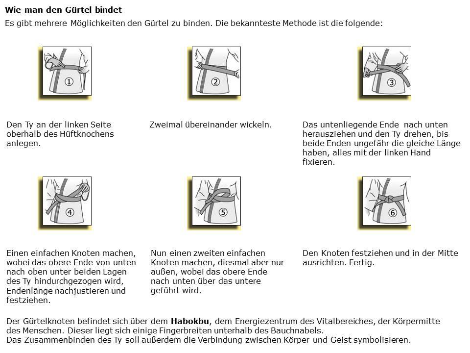 Anleitung, wie man den Gürtel richtig bindet. -